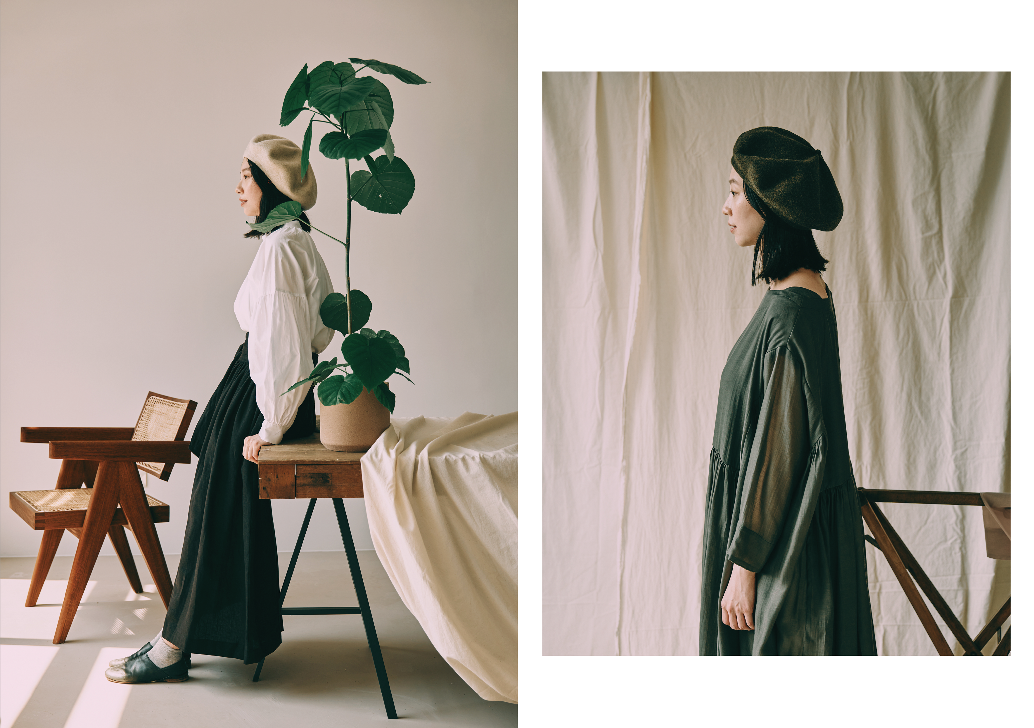cut & paste 2021「秋丘 Autumn Hills」延續著手作日常服,因應台灣冬季冷的短時間,秋裝便於日常穿搭實用。冷熱,是季候間的自然性情,使用輕盈的純棉與亞麻或絲織製成,以抓褶、空氣感的剪裁設計,付以山丘意境;手工車針於摺間、稜線脈絡裡,藏著秋高氣爽的涼意,眺望無受拘束的自由輕盈,圍繞在寬鬆與舒適的穿著體驗,讓衣著更貼近每一天的日常。