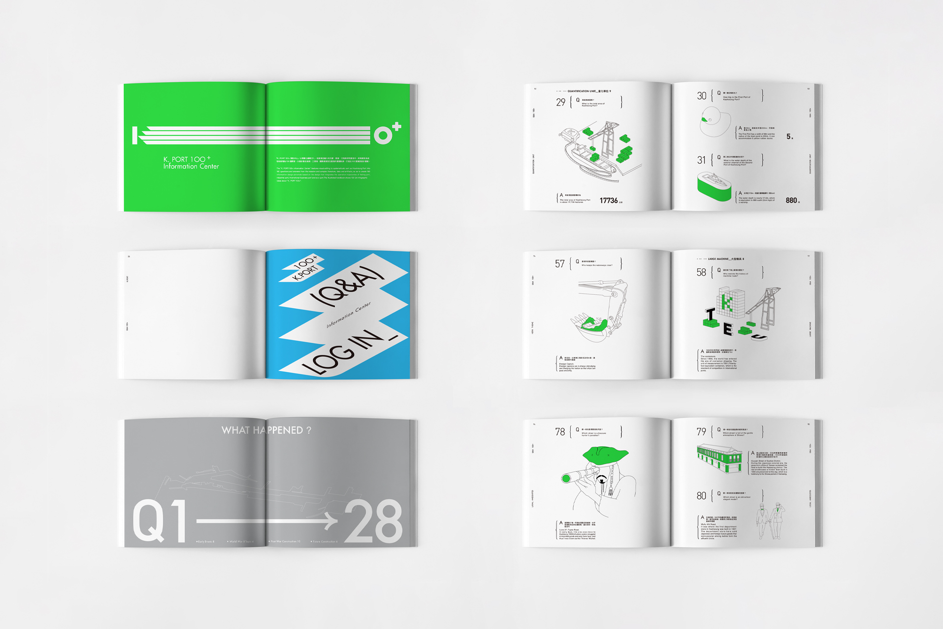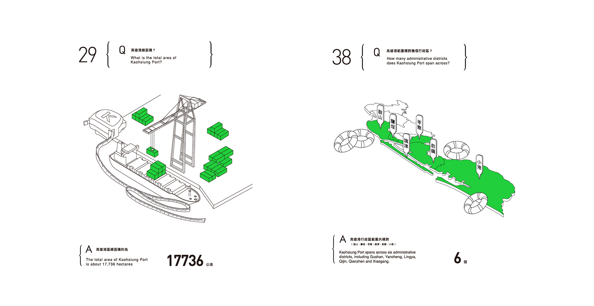 從視覺化編輯切入,將高雄港系統性地梳理為100個問答,打造出100個資訊設計圖鑑。
